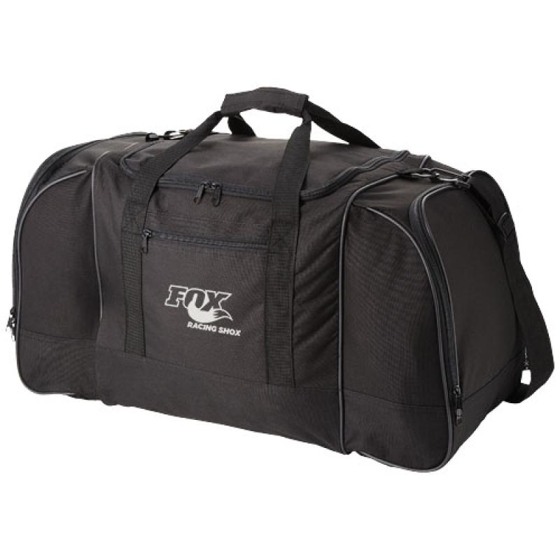 Vancouver travel duffel bag. Large travel bag with zipper large main compartment, front zipper pocket and adjustable shoulder strap. 600D Polyester.