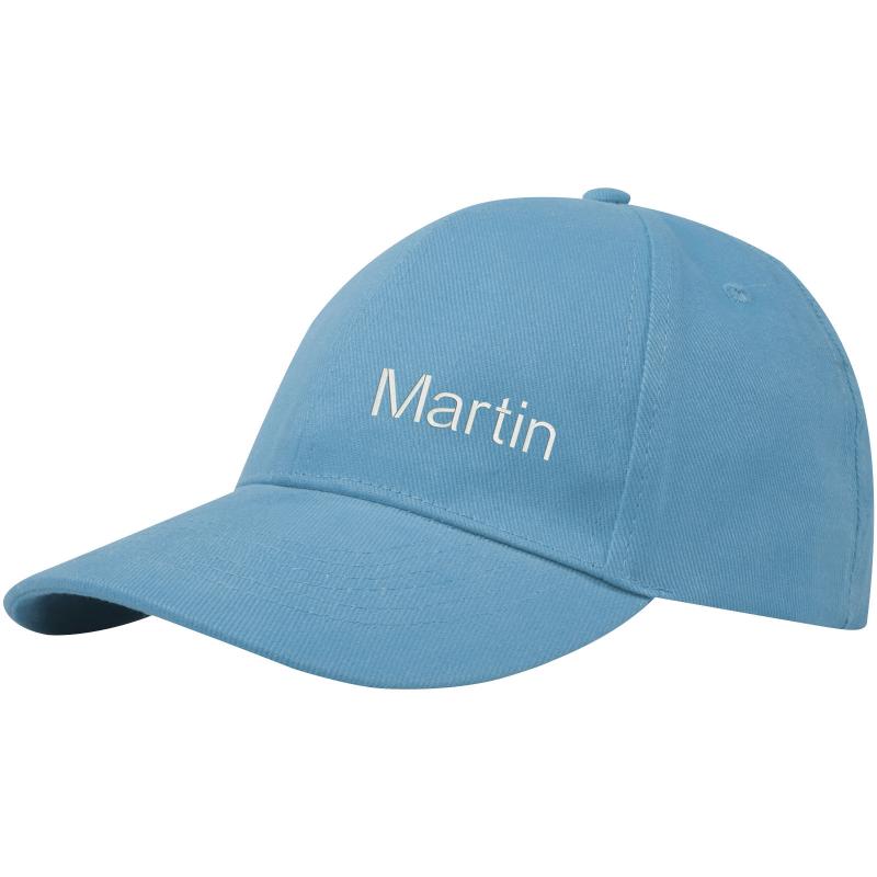 Pre-curved visor with sandwich. Embroidered eyelets for ventilation. Metal buckle closure. Head circumference: 58 cm. Heavy brushed cotton twill of 100% Cotton, 260 g/m2.