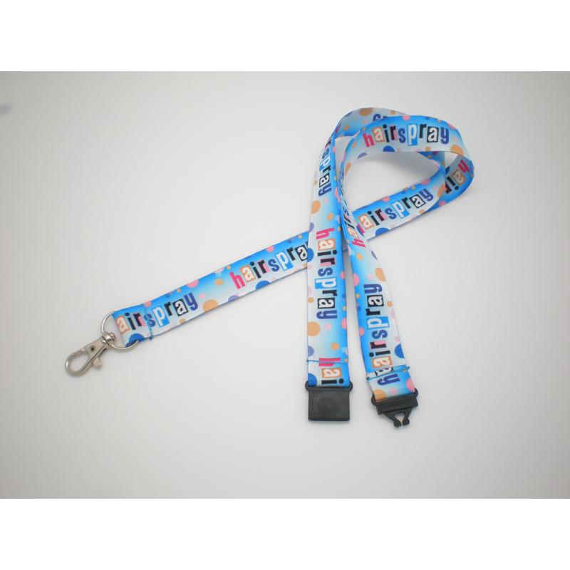 Spot colour printed flat lanyard, with metal alloy hook and safety break.