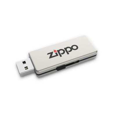This smart one-piece pocket USB is made from zinc alloy and grey plastic. With a generous branding area to take spot or full colour printing or engraving, it features a clever slide mechanism along one side. To pull out the USB connector simply slide your finger across.