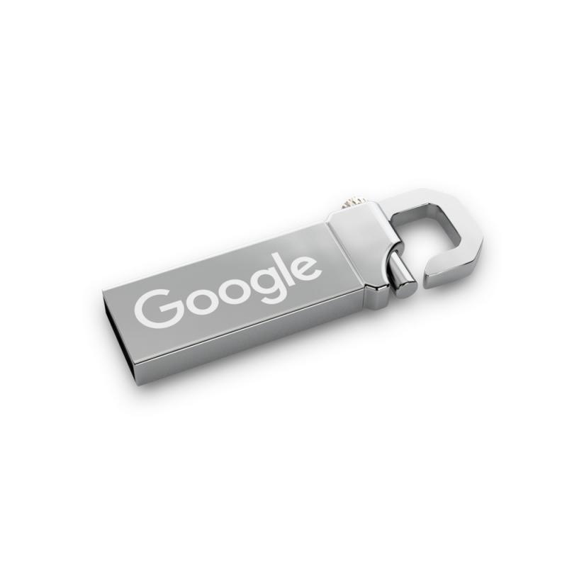 Made from polished zinc alloy for a glossy high-quality finish, this eye-catching USB has ample space for branding via spot or full colour printing or, alternatively, engraving. Its unusual top combines an easy-release mechanism to access the USB connector and a sturdy hook to fasten it anywhere.